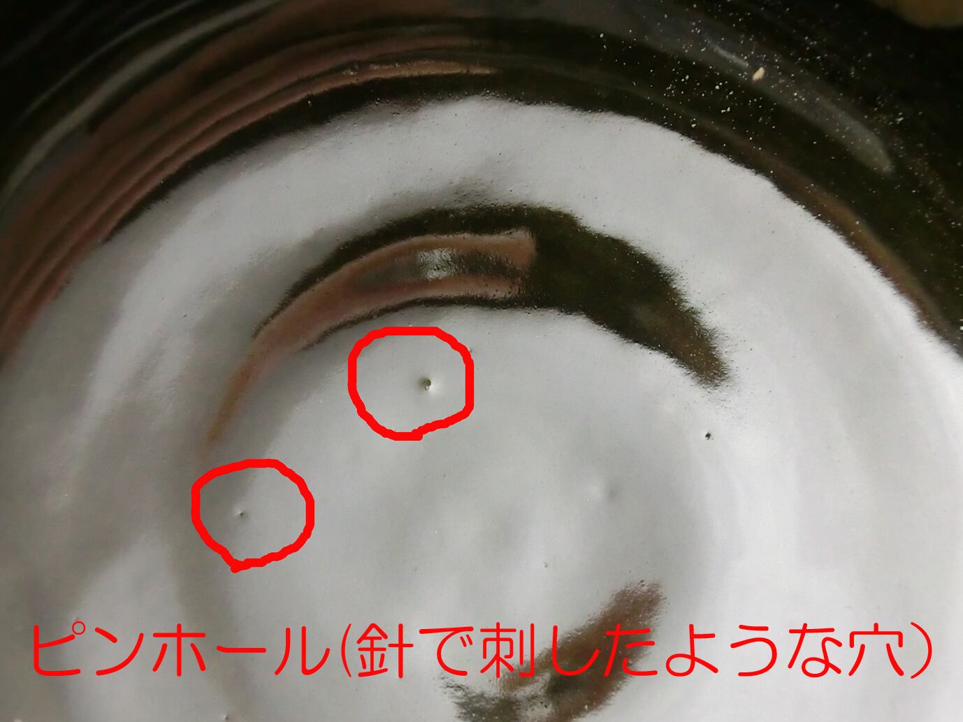 ※焼き物の性質上、側面の表面に鉄粉(黒い点)やピンホール(針で刺したような穴)や小さなボロ等がありプラスチック製品のように完全に滑らかな表面ではございませんのでご承知ください。(画像参照)