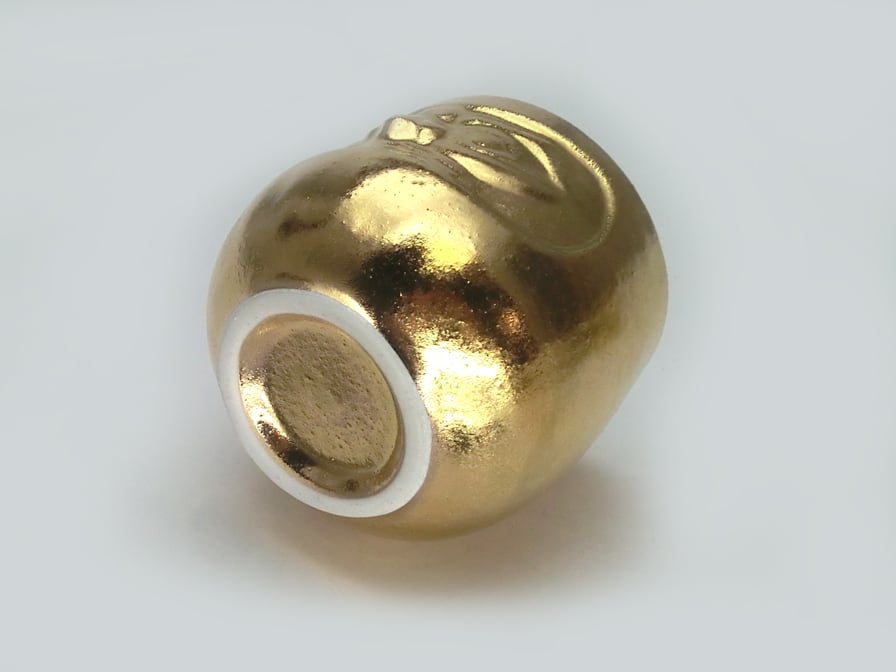 インバウンドで売れ筋の盃に、これもまた外国人に人気ある だるまをモチーフとして掛け合わせ 金の絵付けでさらに豪華なぐい飲みに仕上がりました。