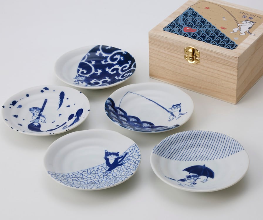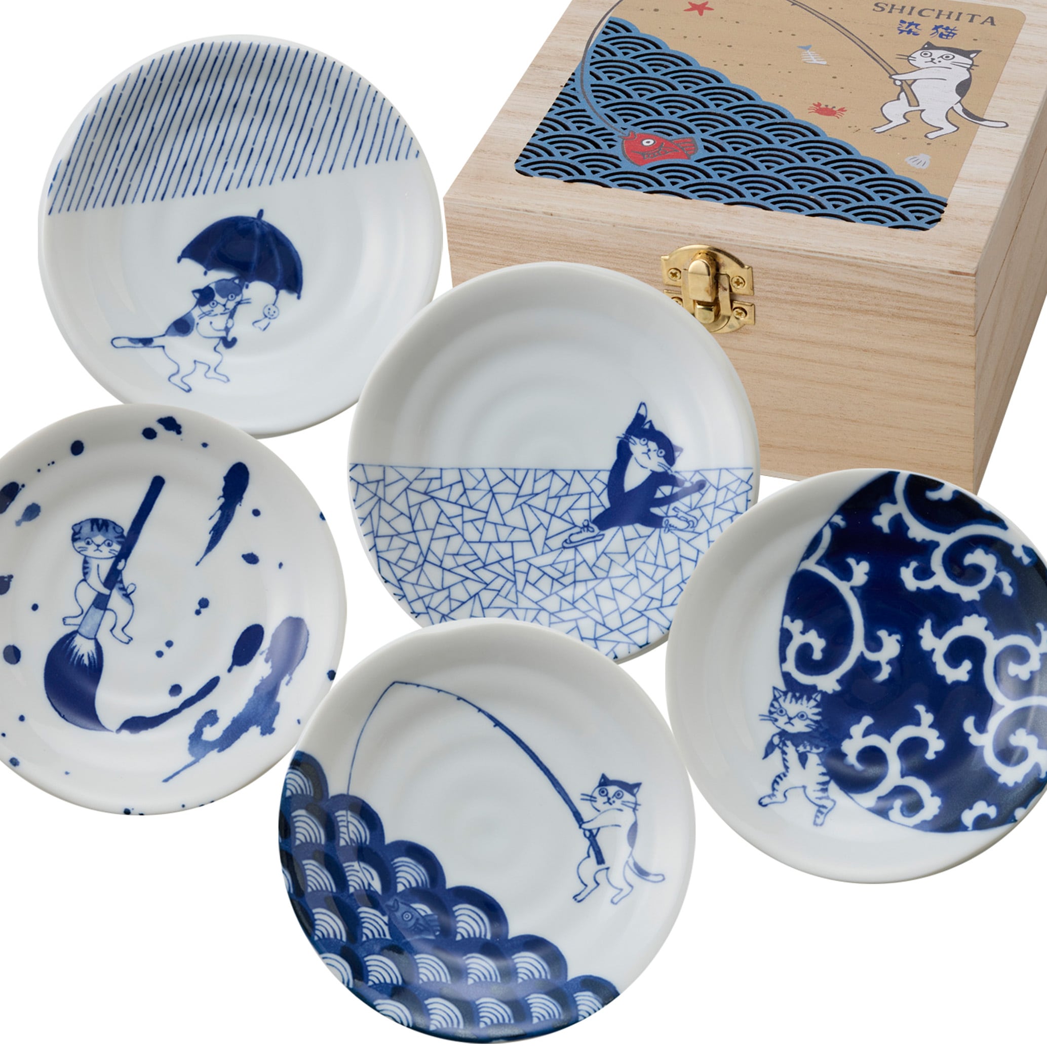 N7-3053C SHICHITA 猫 小皿揃 木箱入