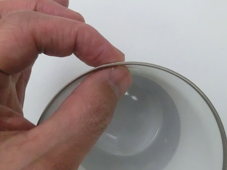 口元の薄さは約1mm、カップ自体の重さは70g持ち手になじむ軽さと心地よい口あたりです。