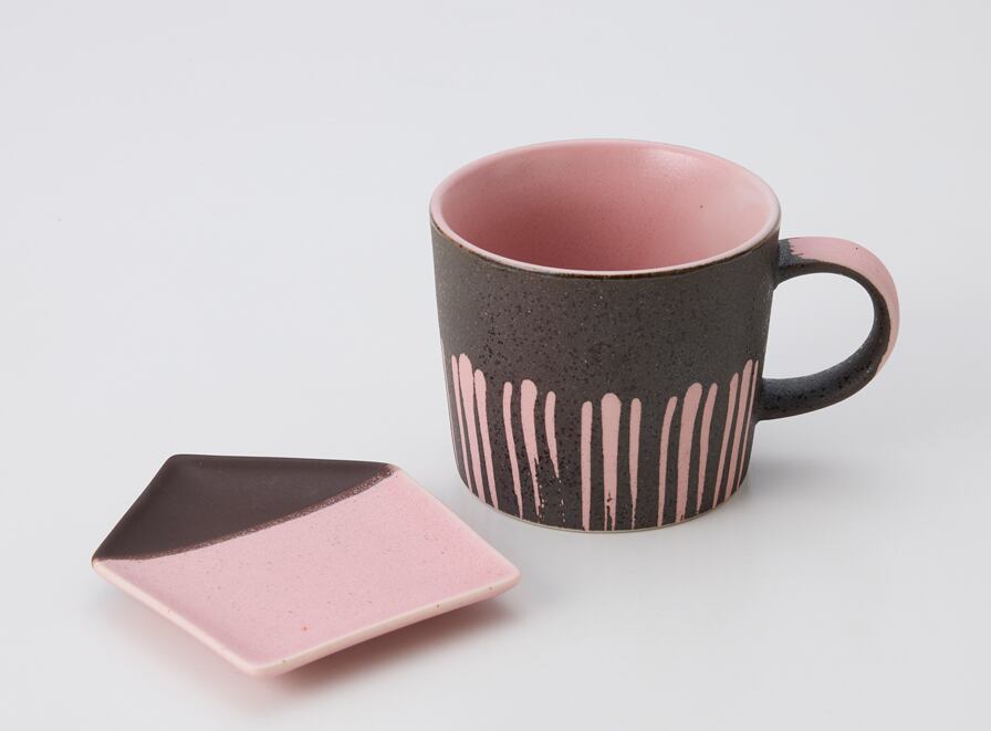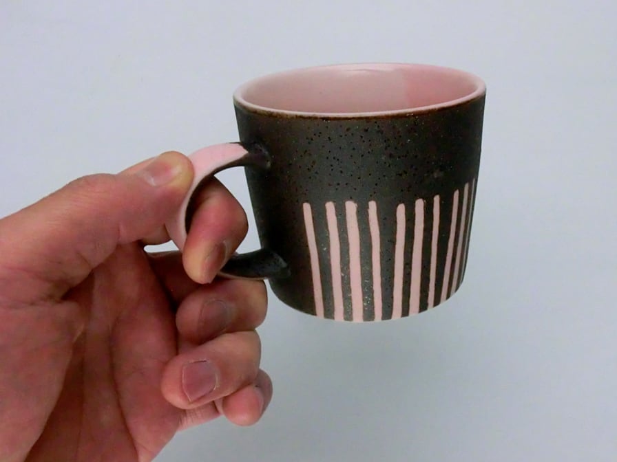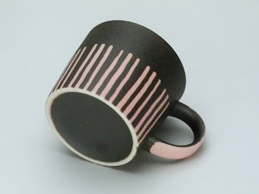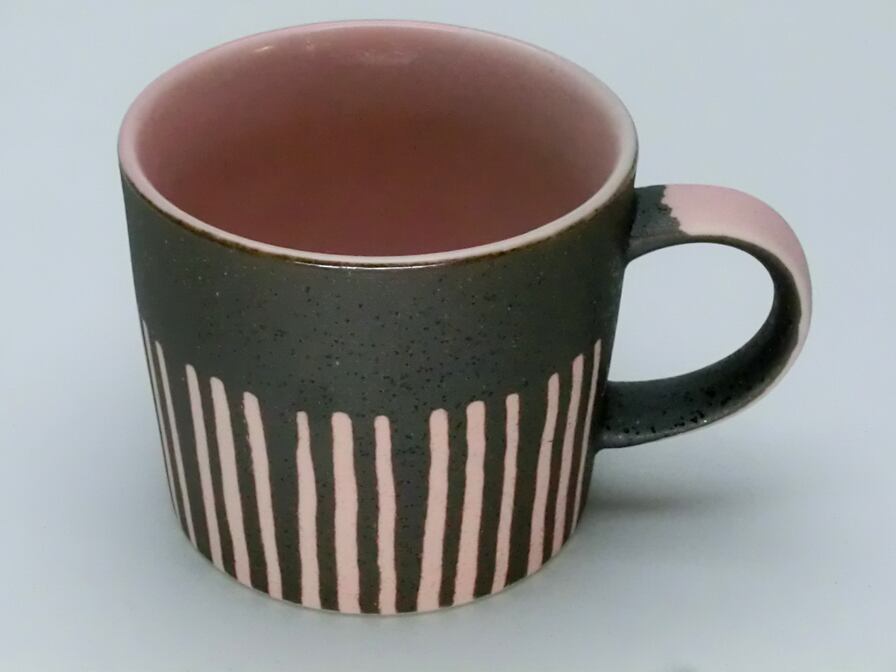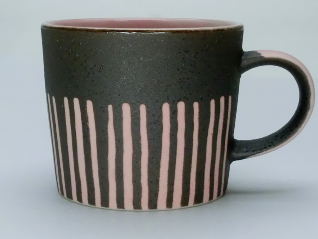 ※マグのデザインの線は手描きの為1点づつ異なります。また仕上がりが均一ではなく、釉状の具合によって、色の濃淡、色ムラ、釉ダレができ 模様や濃淡の出方が変化します。