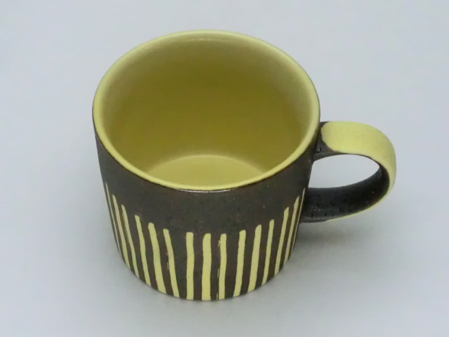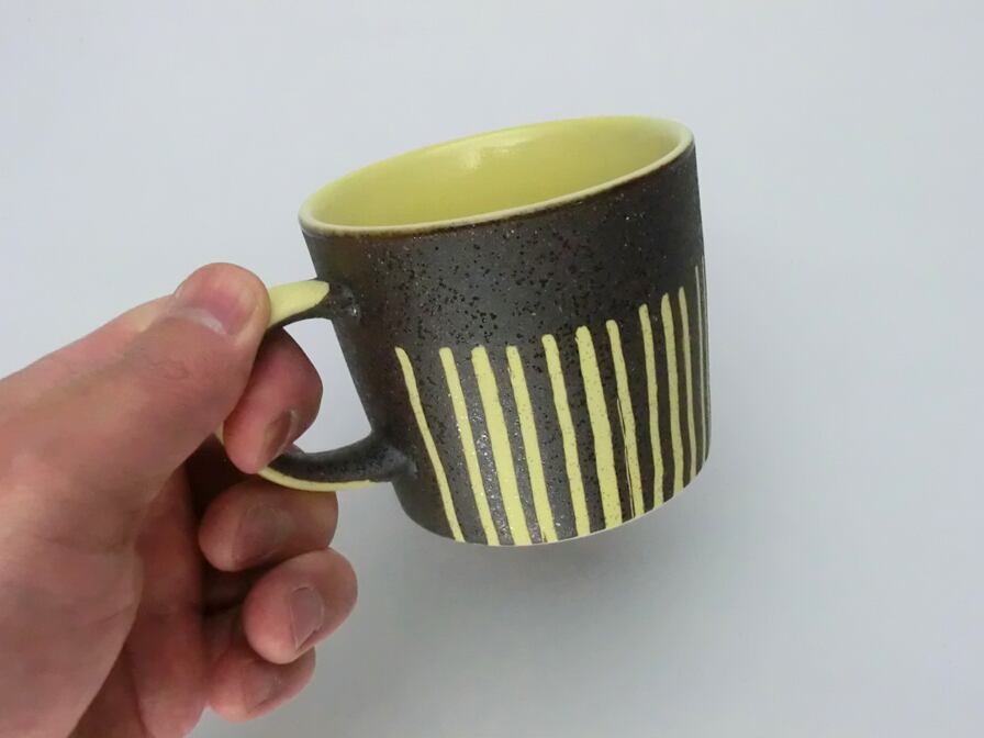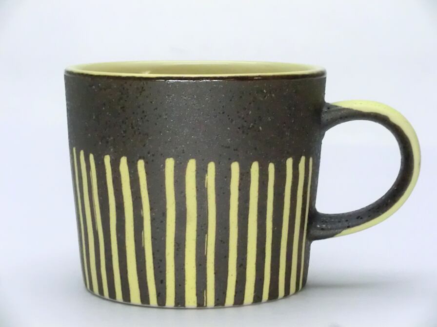 ※マグのデザインの線は手描きの為1点づつ異なります。また仕上がりが均一ではなく、釉状の具合によって、色の濃淡、色ムラ、釉ダレができ 模様や濃淡の出方が変化します。