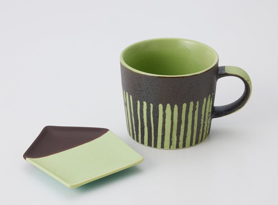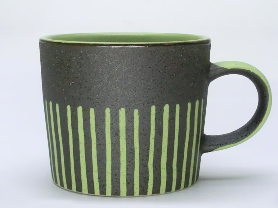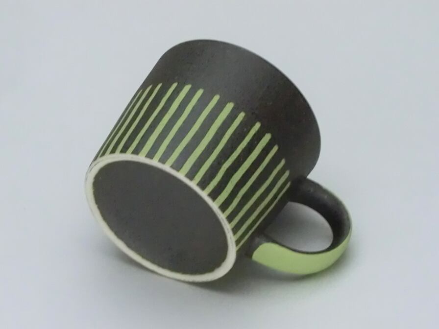 ※マグのデザインの線は手描きの為1点づつ異なります。また仕上がりが均一ではなく、釉状の具合によって、色の濃淡、色ムラ、釉ダレができ 模様や濃淡の出方が変化します。