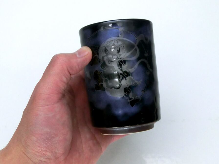 日本美術の象徴的なモチーフとして有名で最近では海外の方にも人気の風神雷神を美濃焼の湯呑に絵付けをしました。