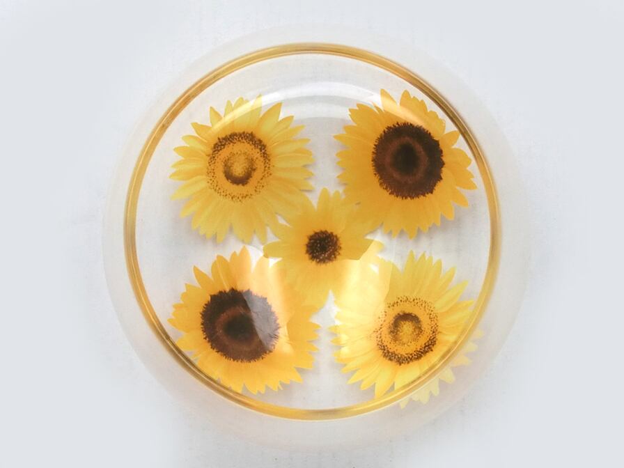 光の屈折により水面に花が浮かんでいるようにみえたり模様のように大きく見えたり